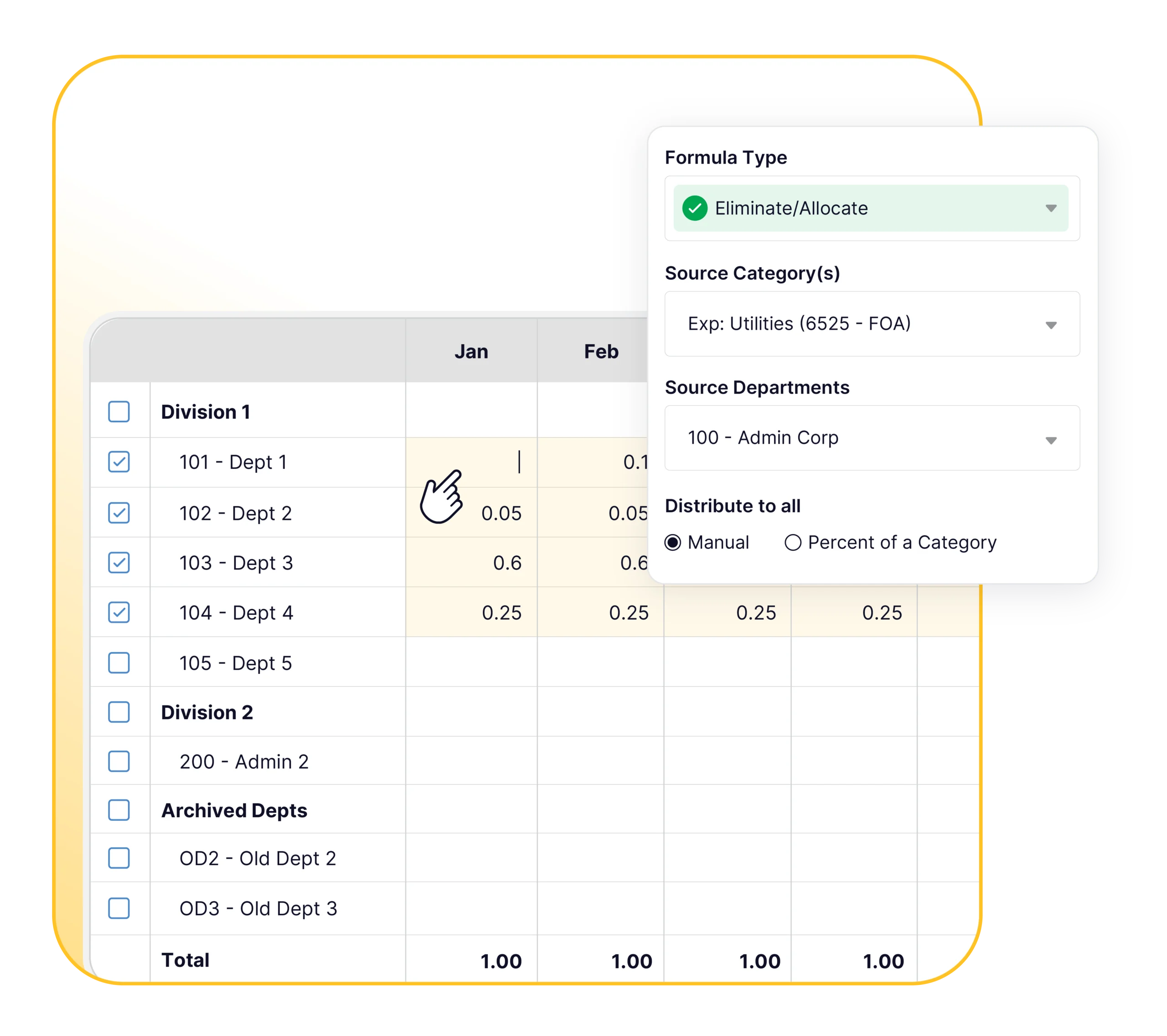 Allocating costs across nursing, administration, facilities, and clinical departments requires sophisticated allocation methods that Excel formulas fail to manage reliably.
