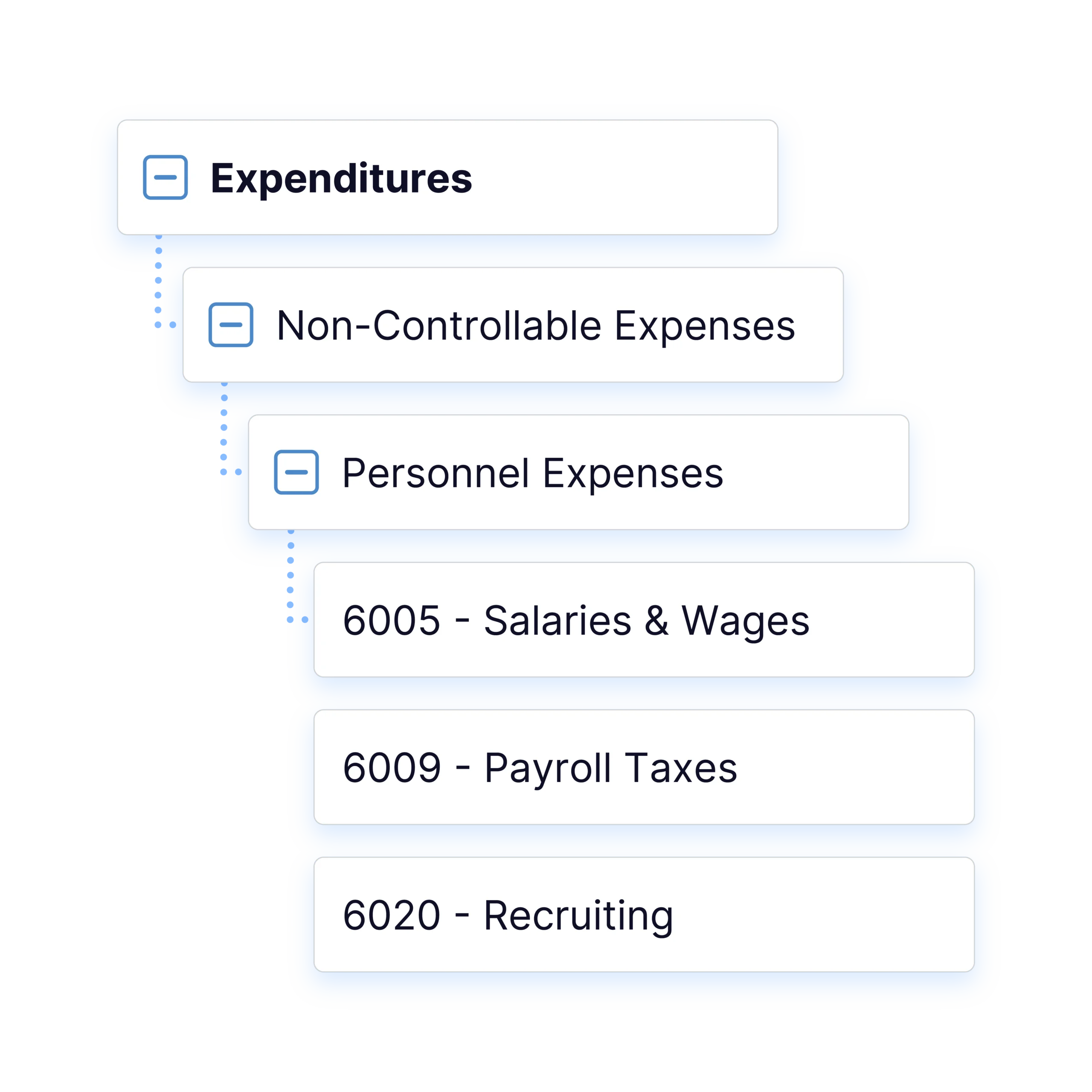 Four hierarchical levels in your chart of accounts, three levels of organizational structure, and two layers for unlimited dimensions. All automatically rolled up with no need for risky formulas. Filter at every level to display your data your way while honoring user permissions.