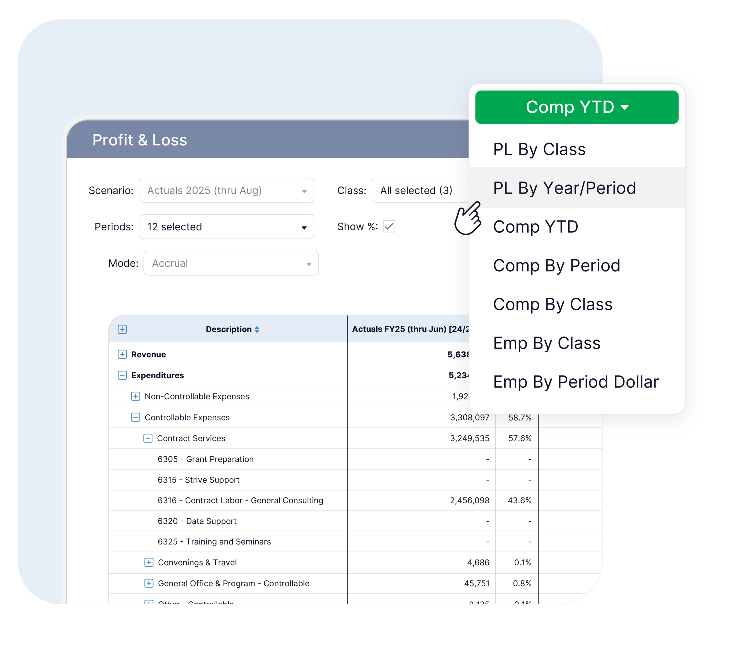 Compare budgets to actuals side by side at any level of detail – instantly. Our database foundation means you can: